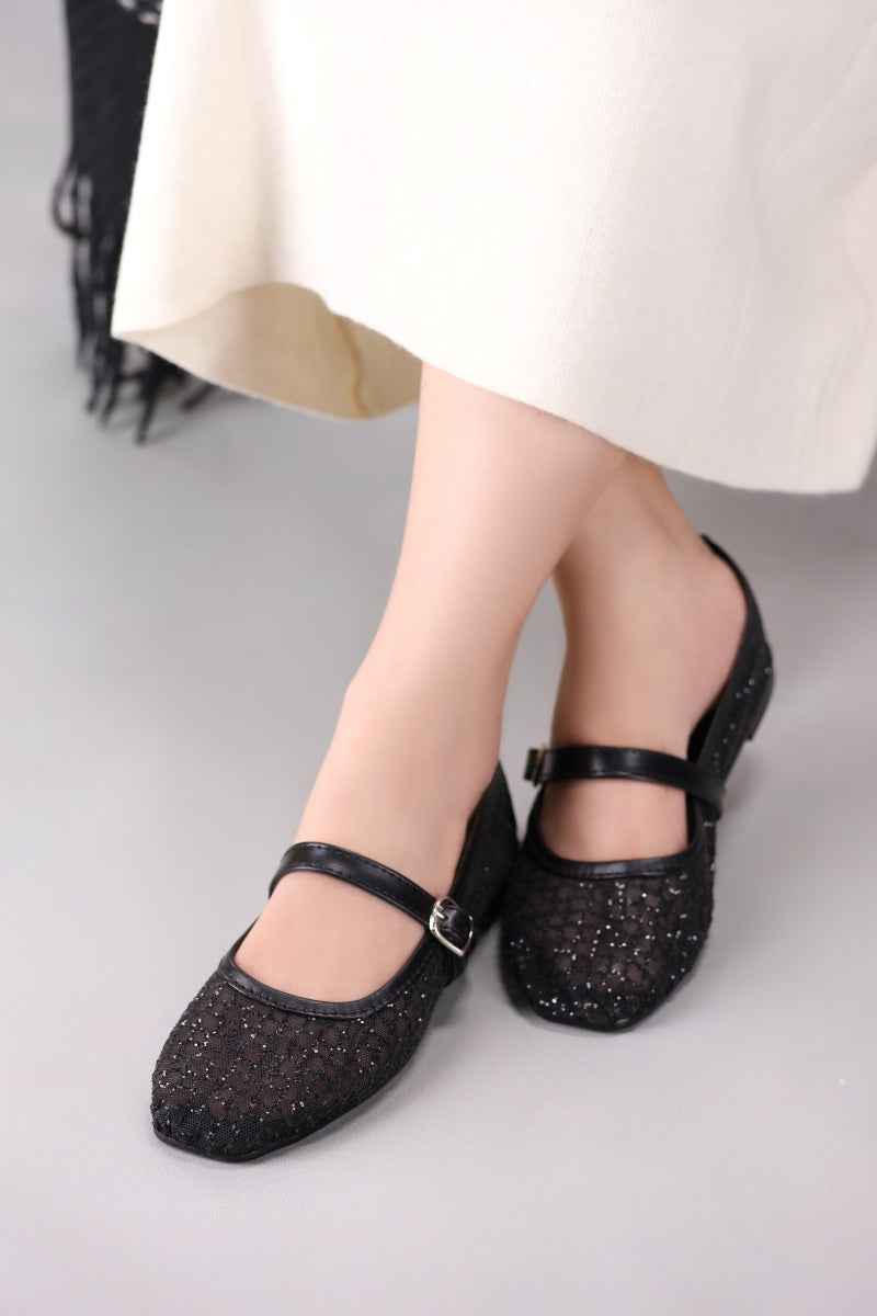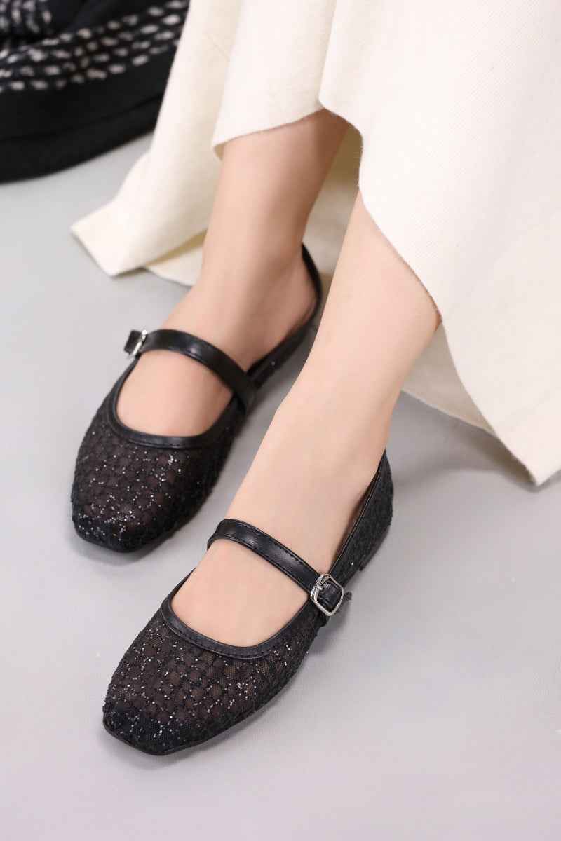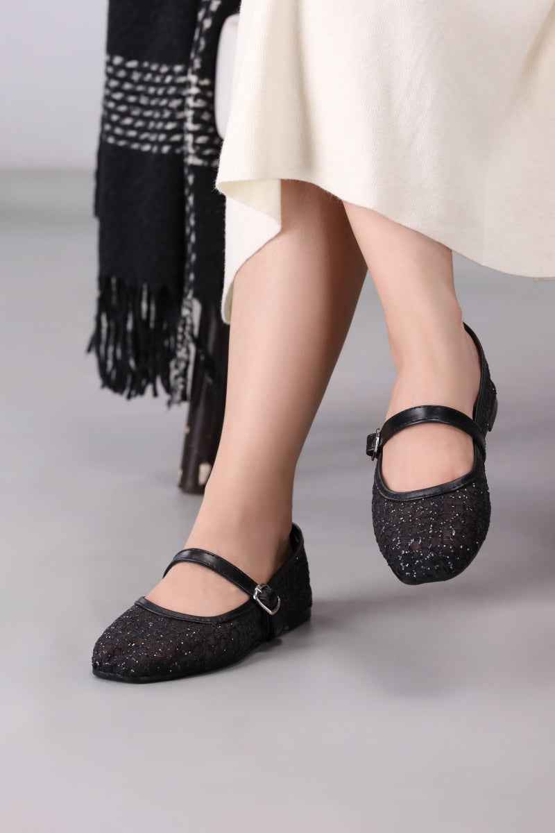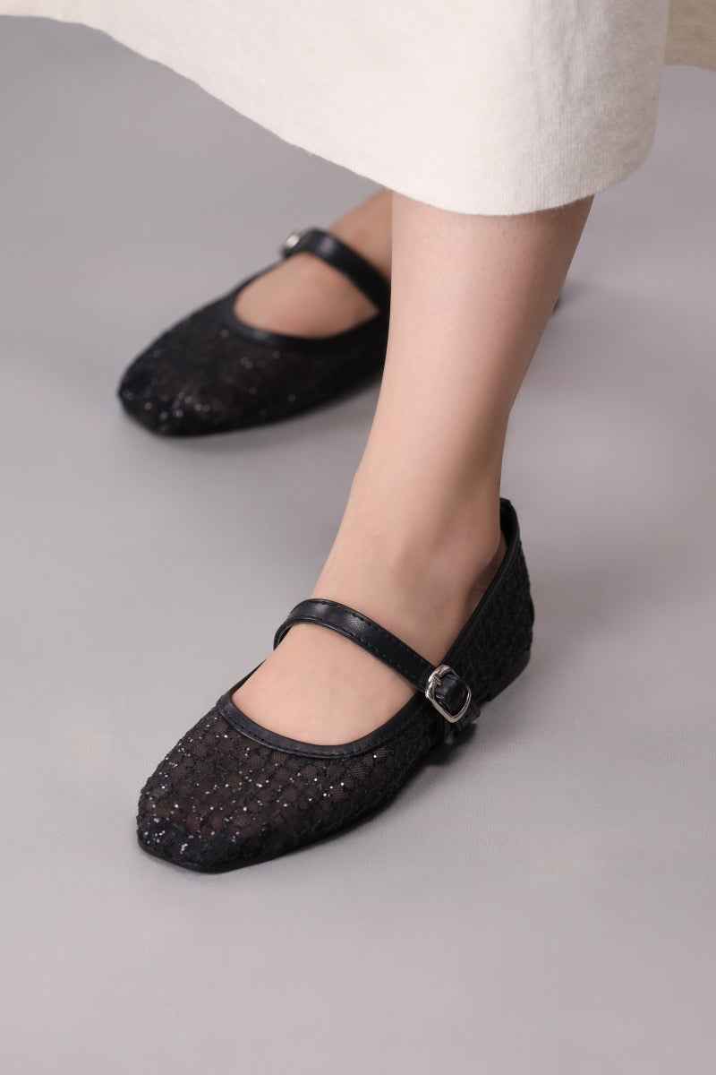 A little shimmer, a lot of chic. Midnight Sparkle pairs a sheer lace-mesh upper dusted with fine glitter with a smooth strap and secure buckle. The softly squared toe and cushioned in-sock keep it elegant yet wearable—perfect for dinners, Eid events, and dress-up days that still need comfort.