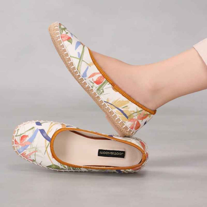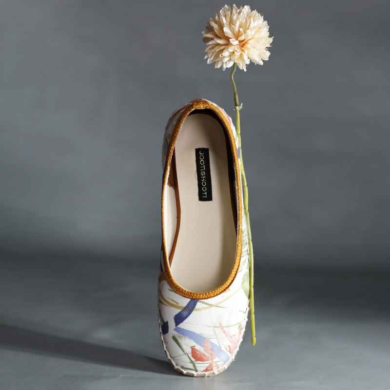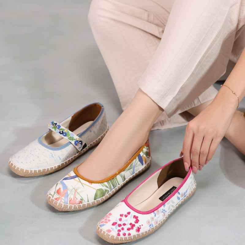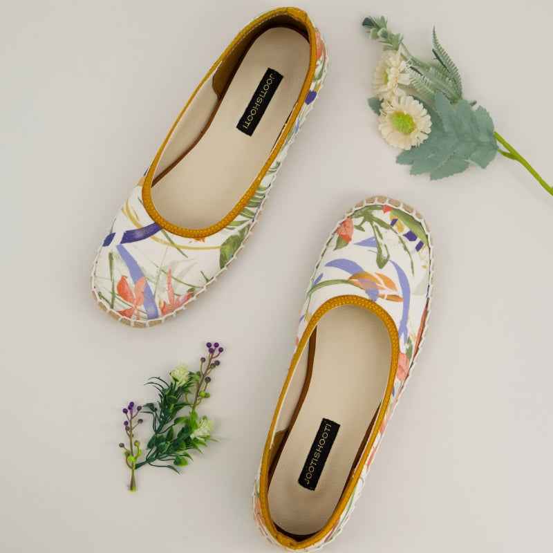 Bring a touch of tropical paradise to your wardrobe with these vibrant botanical-print espadrilles inspired loafers, accented with natural textures and bright trims. Whether you're exploring sandy beaches, enjoying a picnic in the park, or wandering through new cities, these shoes keep you comfortable and stylish, celebrating the adventurous spirit of summer.